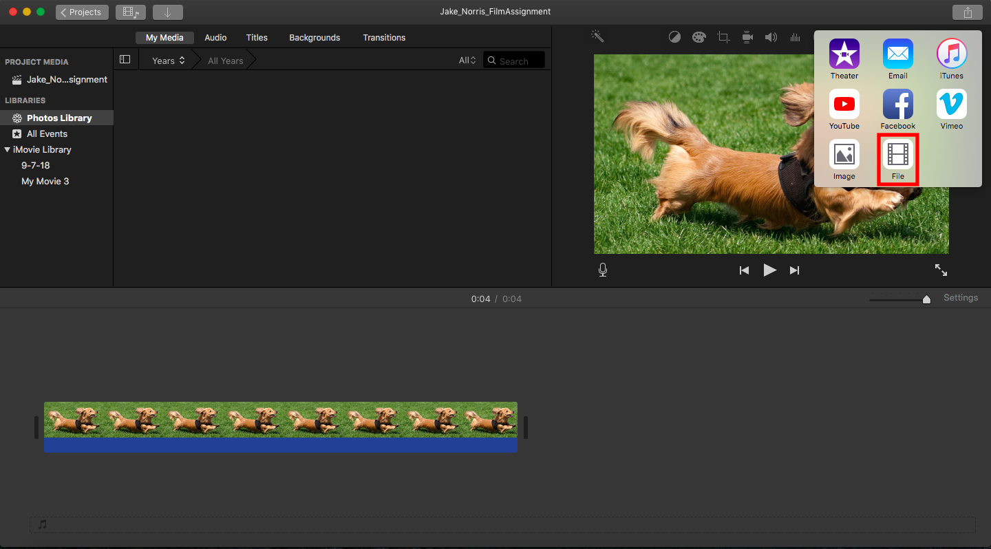 Q. How do I export an iMovie project for an assessment?